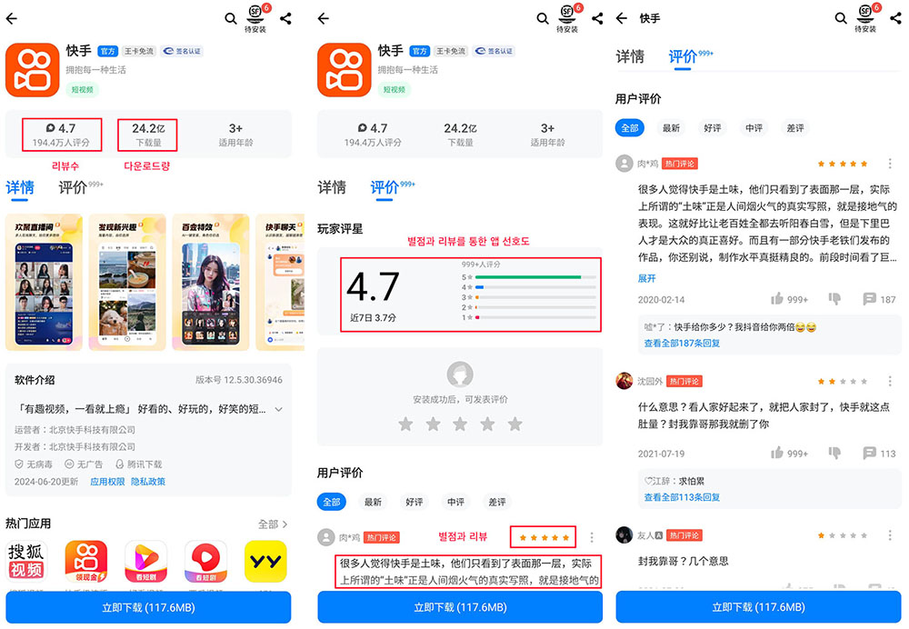 | 앱 마켓 | 다운로드량 | 별점 | 리뷰 |