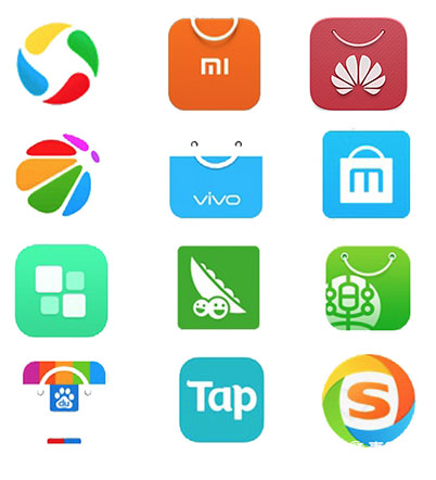 바이두 / 텐센트 / VIVO / OPPO /샤오미 / MEIZU / 360 / 레노보 / 화웨이 / 삼성 / 애플 앱스토어(중국전용) 등