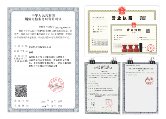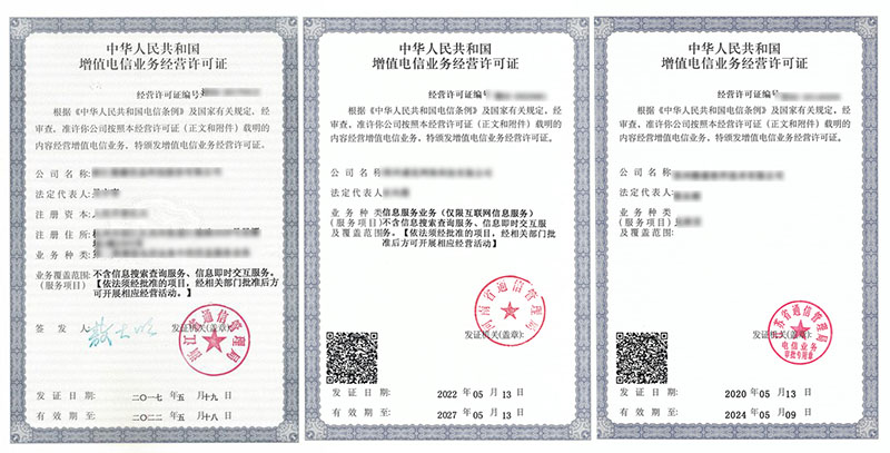 ICP 경영성 허가증 / EDI 경영성 허가증 / 온라인 문화경영 허가증 / 라디오 및 TV 경영 허가증 등